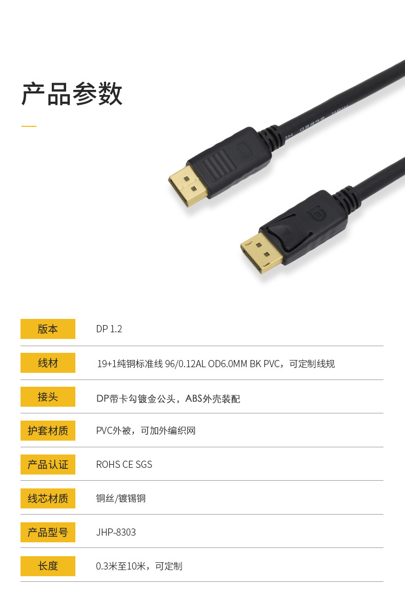 厂家批发DP线 1080P4K高清线电脑电视连接线