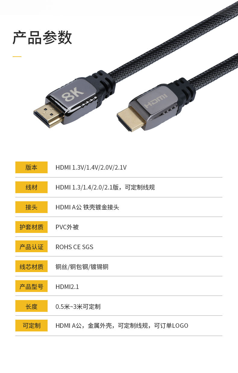 厂家批发8k高清连接线 0.5-3米电视电脑显示器
