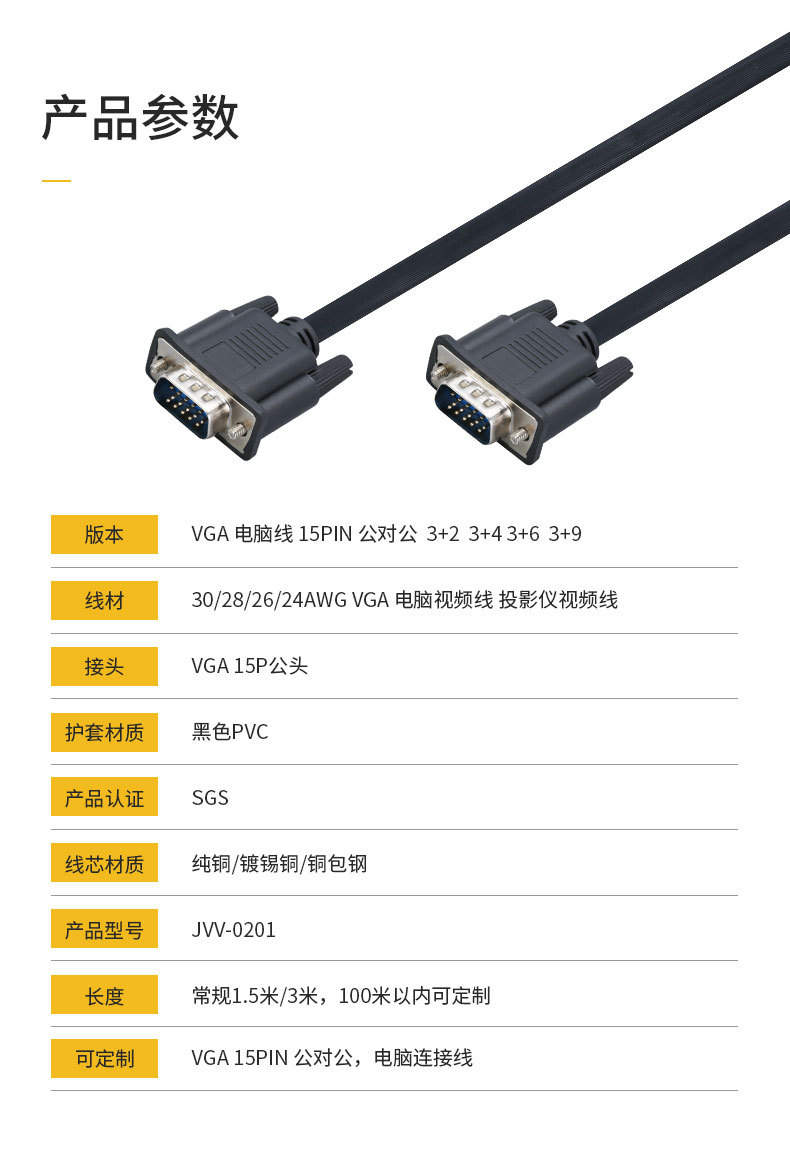 vga线 1080P电脑显示器高清音视频连接线 美规
